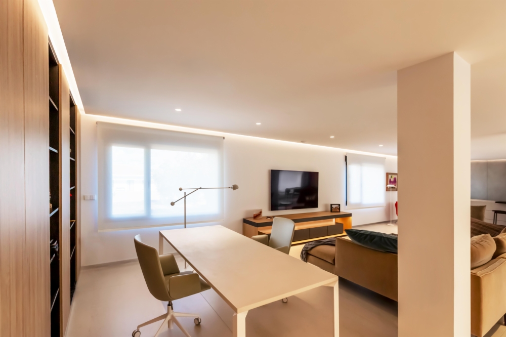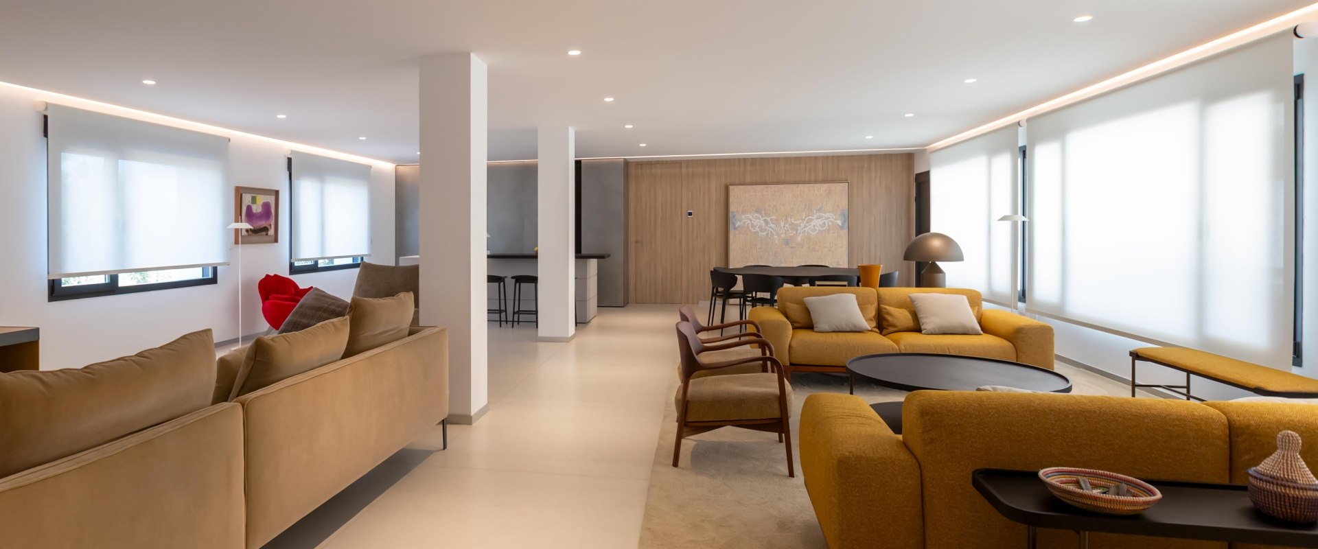 Para disfrutar de este flujo de luz sin renunciar al confort, era imprescindible contar con soluciones de Protección Solar y Decoración que facilitarán un control eficiente, dinámico y sencillo de la incidencia solar. La elección fue clara: Estores enrollables Saxun, una solución que combina diseño, funcionalidad y bienestar.