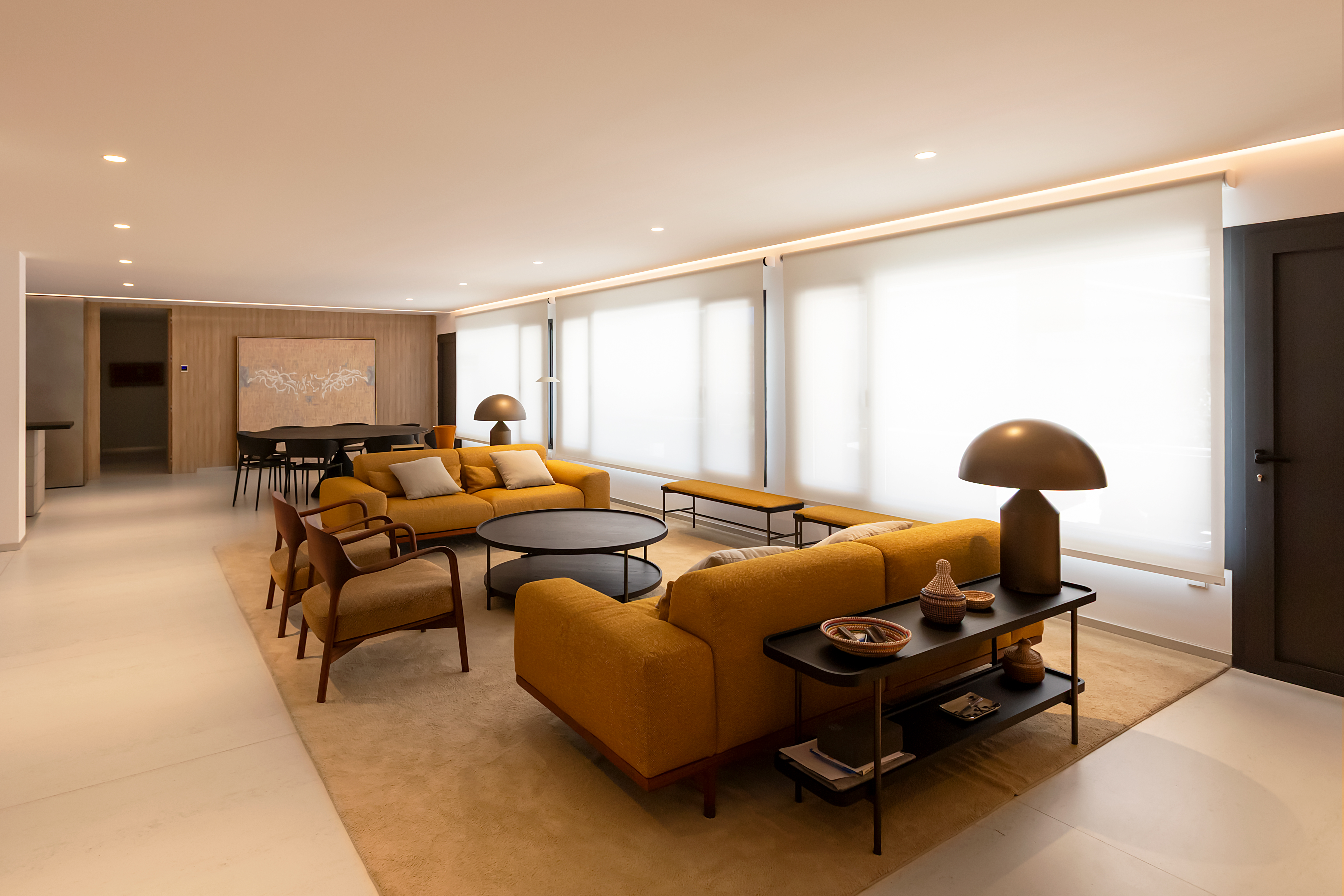 Los estores se confeccionaron en un tono blanco neutro y con terminal recto Slim, aportando un extra de luminosidad y elegancia a cada espacio. Además, gracias a la motorización de los Estores, el control de la luz solar se vuelve totalmente automatizado, mejorando la eficiencia energética del hogar y aumentando la sensación de confort y bienestar.