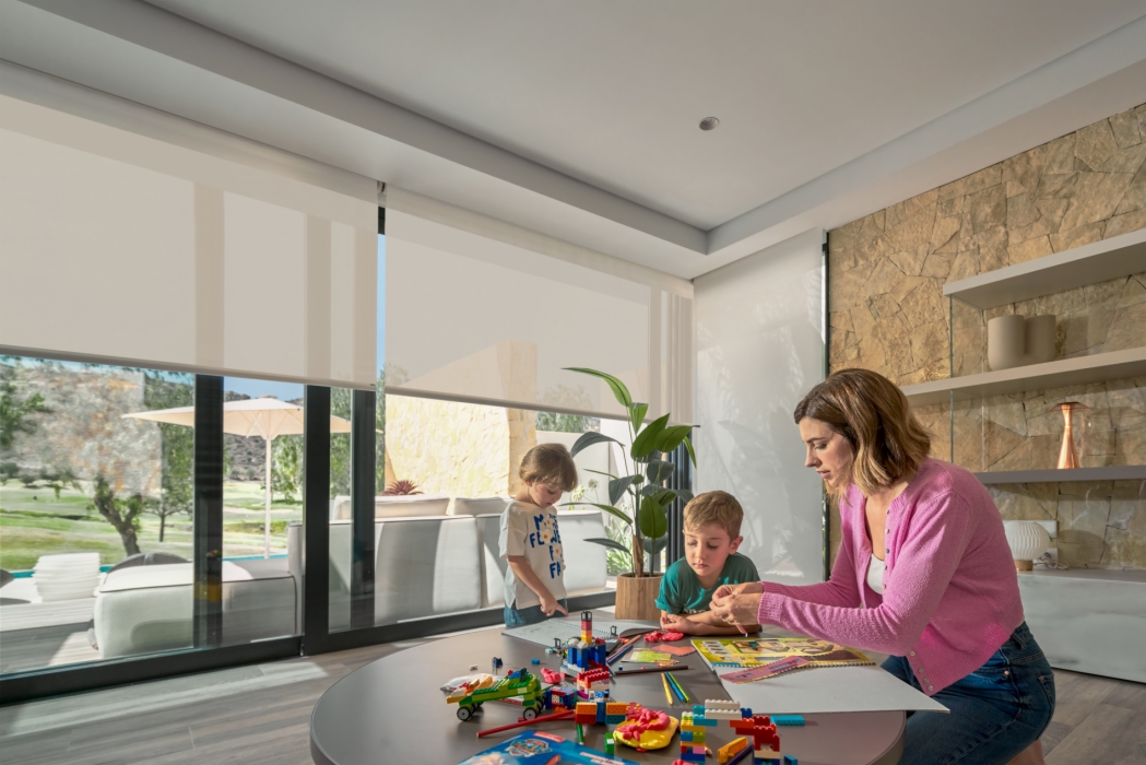 Gracias a lo intuitivo que resulta el uso de Velia, cualquier persona puede operar el estor tirando de la cadena frontal para subirlo y de la trasera para bajarlo.