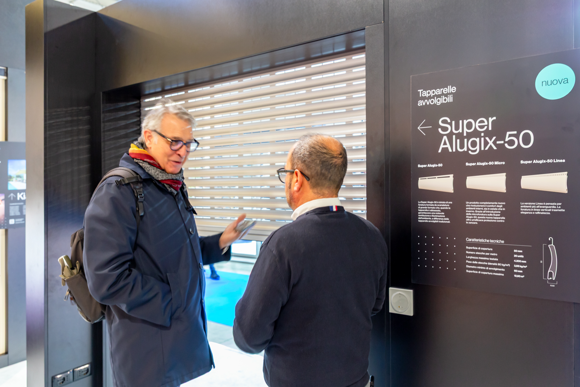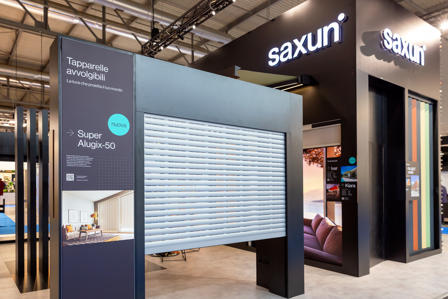 De plus, les solutions plus traditionnelles ne pouvaient manquer, comme les volets en constante innovation, avec des modèles tels que la lame Super Aligix-50, conçue pour optimiser le passage de la lumière et améliorer l'isolation thermique.