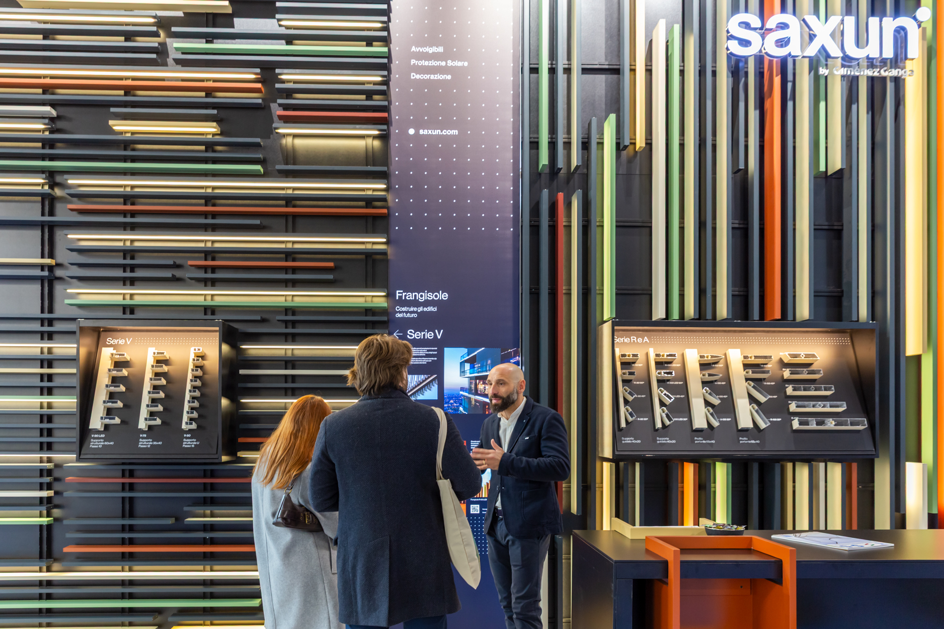 Nos systèmes de protection solaire ont également suscité un vif intérêt, notamment le système Wind Screen ZIP et les modèles de stores motorisés Kiara et Ivar, qui offrent une efficacité énergétique et une adaptabilité totale aux conditions environnementales. L'ensemble de nos persiennes présentées sur le stand a permis de montrer comment il est possible d'embellir une façade tout en régulant l'entrée de la lumière naturelle et la ventilation.