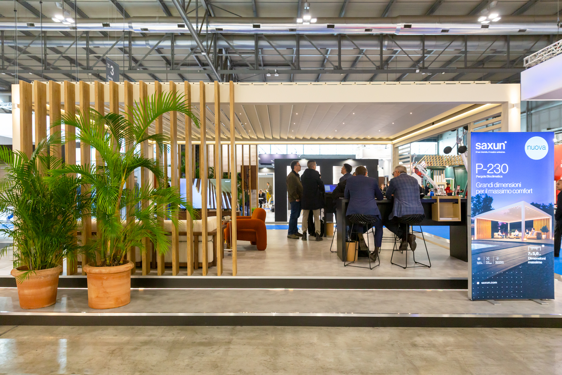 La nouvelle Pergola Bioclimatique P-230 grand format a attiré tous les regards grâce à sa capacité à couvrir de grandes surfaces sans obstacle, élevant ainsi le confort extérieur à un autre niveau. Intégrée à des systèmes tels que notre volet coulissant Eris, elle a montré comment le contrôle de la lumière et l'intimité peuvent aller de pair avec un design raffiné.